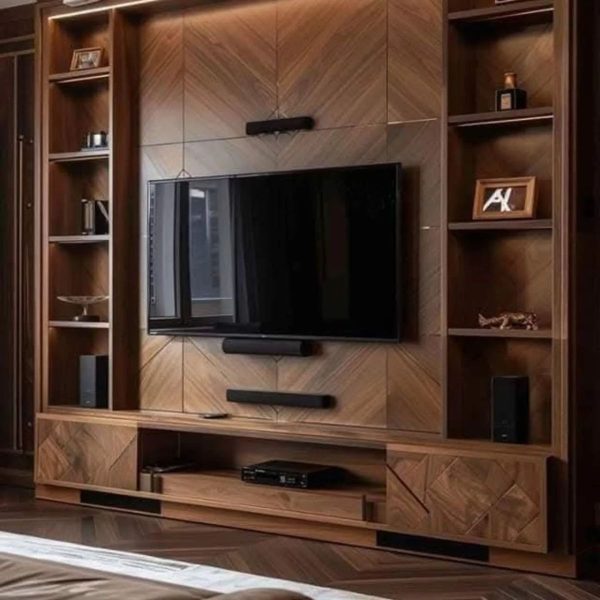 Nội thất phòng khách hiện đại kết hợp vân gỗ sồi tạo nên nét quý phái trang trọng, màu sắc hài hòa tạo sự quyến rủ