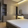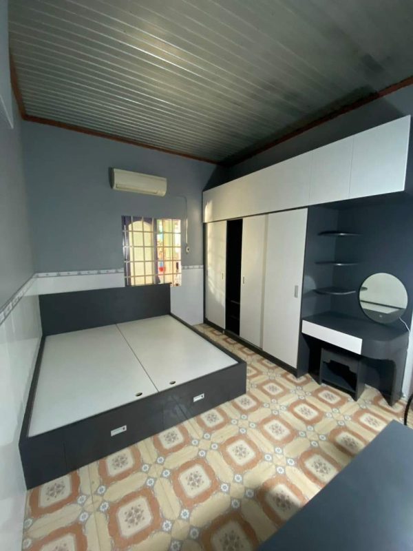 Mẫu thiết ké nội thất phòng ngủ bao gồm giường ngủ có học kéo, bộc nệm đầu giường, vách đầu giường, tap đầu giường, tủ áo, bàn trang điểm, kệ tivi, với các vật liệu ván công nghiệp mdf chống amar phủ melamine, tấm than tre vân đá …