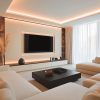 phòng khách tông màu trắng + vách lam