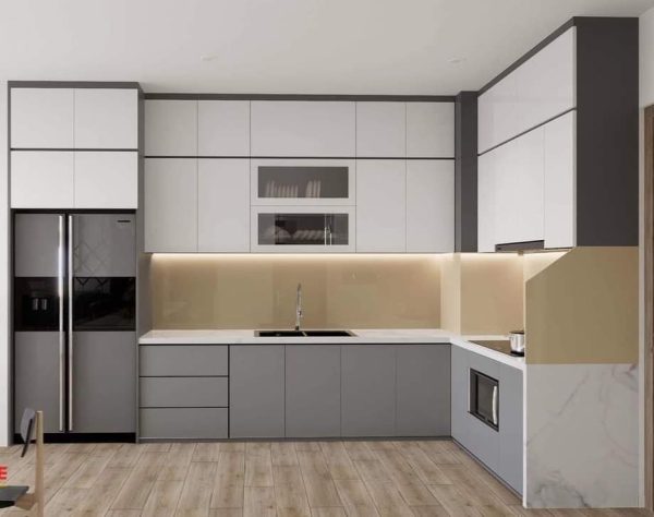 Kích thước tủ bếp: tùy theo kích thước phòng bếp ( tối thiểu dài 2m trở lên )