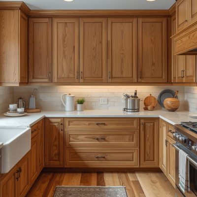 Việc lựa chọn vật liệu cho tủ bếp chữ U cũng rất quan trọng. Gỗ tự nhiên mang lại vẻ đẹp sang trọng và ấm cúng, nhưng lại có giá thành cao và cần bảo dưỡng kỹ lưỡng. Gỗ công nghiệp là lựa chọn phổ biến nhờ vào giá thành hợp lý và đa dạng về mẫu mã, nhưng độ bền không cao bằng gỗ tự nhiên. Inox là vật liệu bền bỉ, dễ vệ sinh nhưng có thể không phù hợp với những gia đình ưa chuộng phong cách cổ điển.