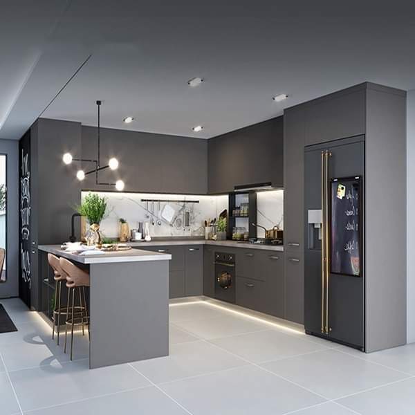 Tủ bếp gỗ công nghiệp mdf melamine màu xám chì