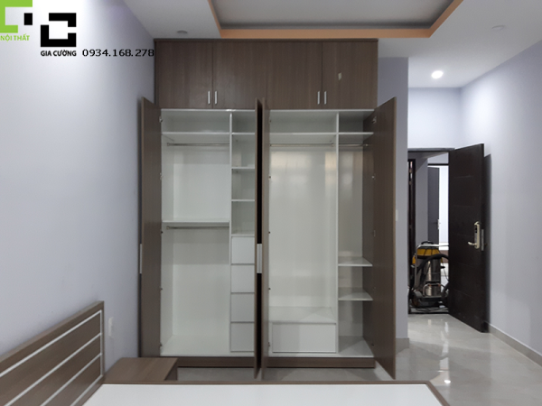 Sản phẩm nội thất của nhà anh Dương ở Bình Tân được sử dụng kết hợp chất liệu gỗ Acrylic, Laminate
